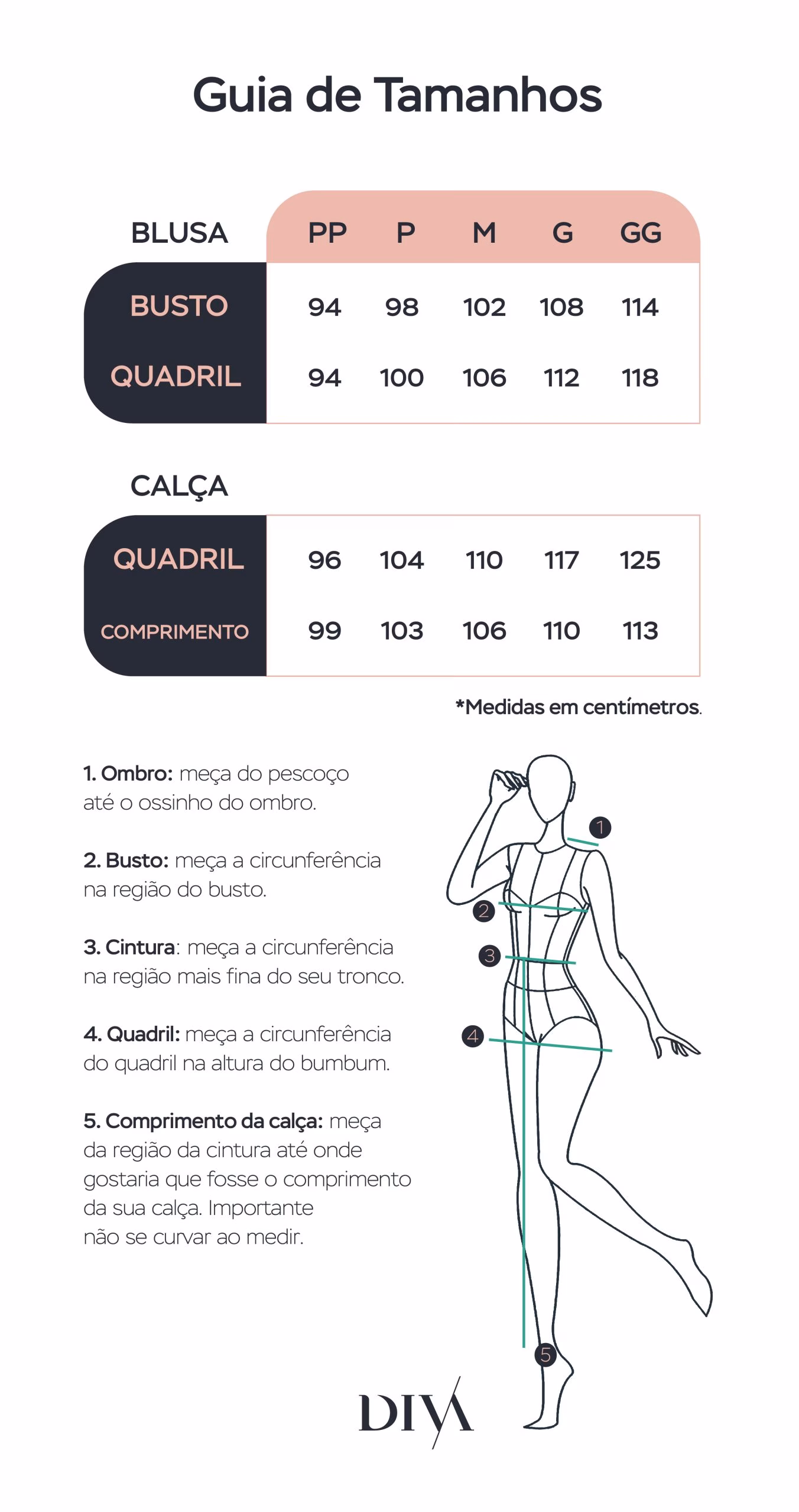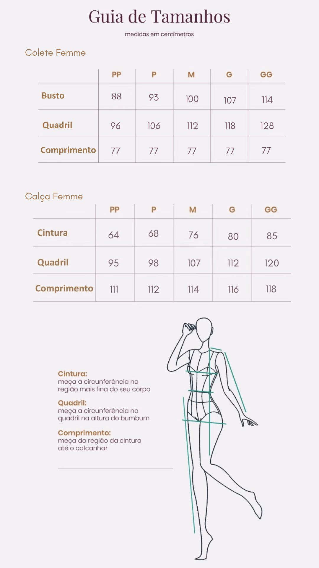 - Bolsos Laterais Embutidos: Práticos e discretos, oferecem funcionalidade sem comprometer o design.Composição: 95% poliéster 5% elastano.