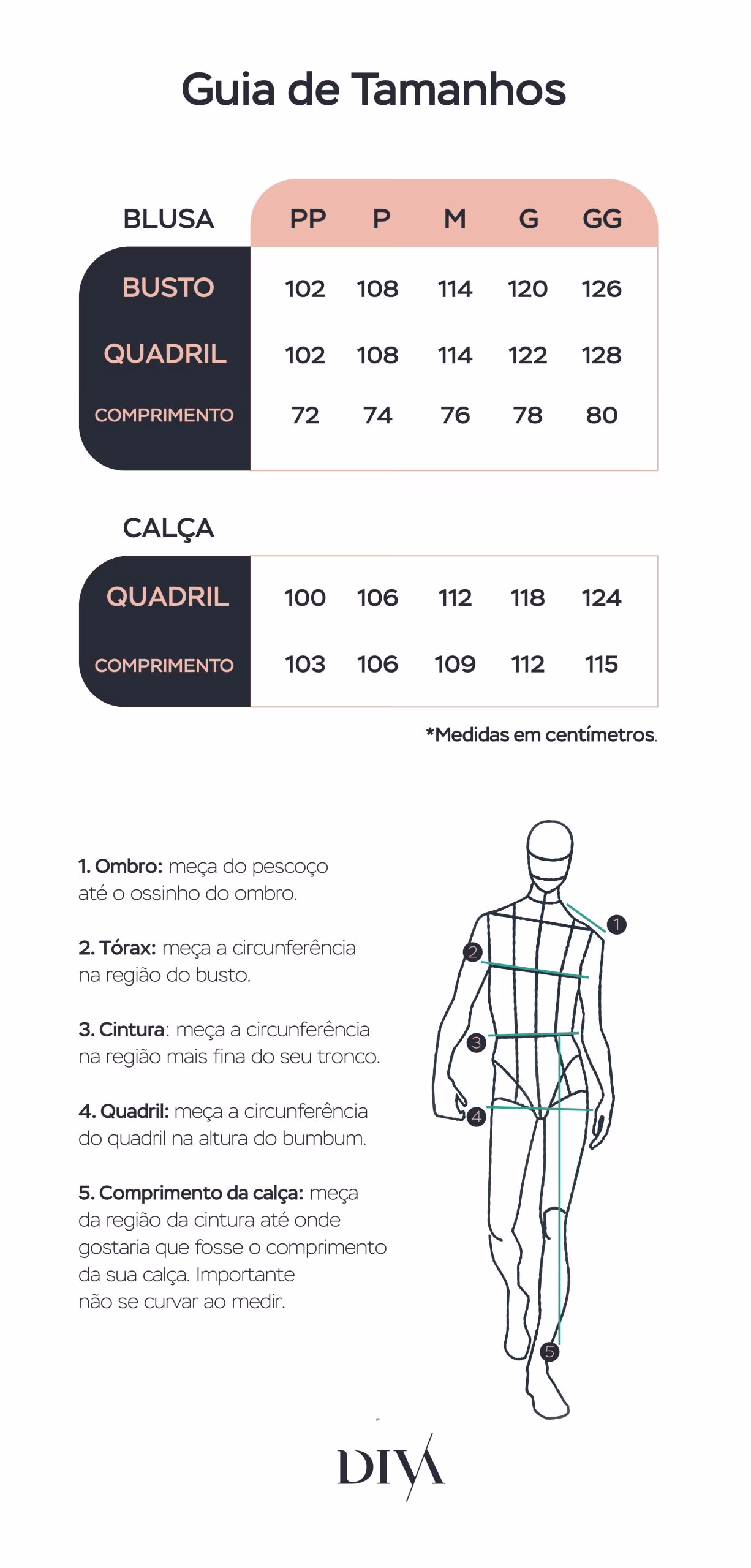 - Calça com Elástico e Cordão: Ajustável na cintura, garantindo maior conforto e personalização no uso.