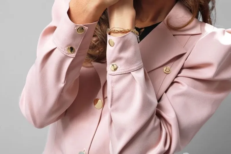 – Fechamento Elegante: Três botões frontais também banhados a ouro, para um acabamento luxuoso.