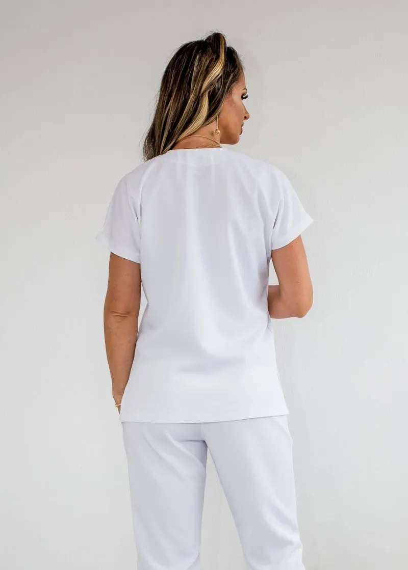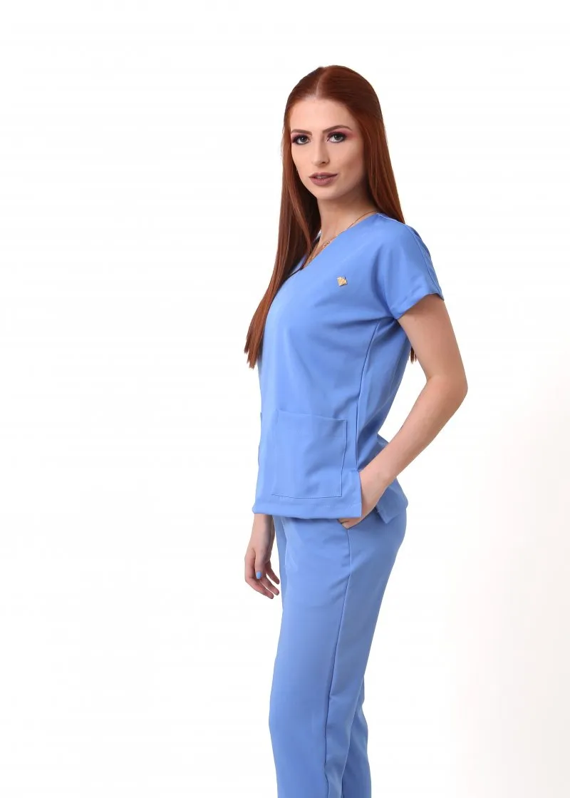 Confeccionado em tecido importado com elastano, o Pijama Cirúrgico Feminino é ideal para quem precisa de uma peça durável, confortável e prática, garantindo liberdade de movimento durante longos períodos de trabalho.