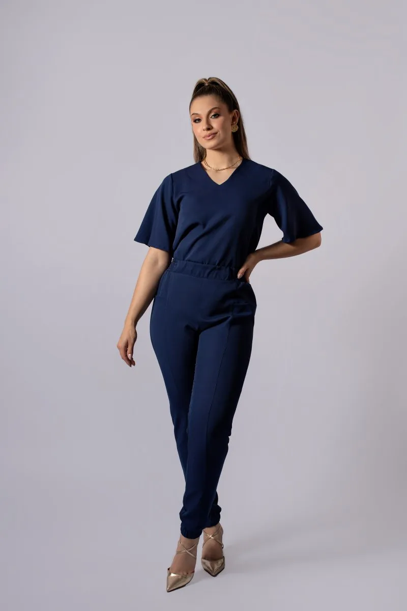 - Recorte Frontal e Bolsos Laterais: Detalhes modernos e funcionais, ideais para quem precisa de praticidade sem abrir mão do estilo.