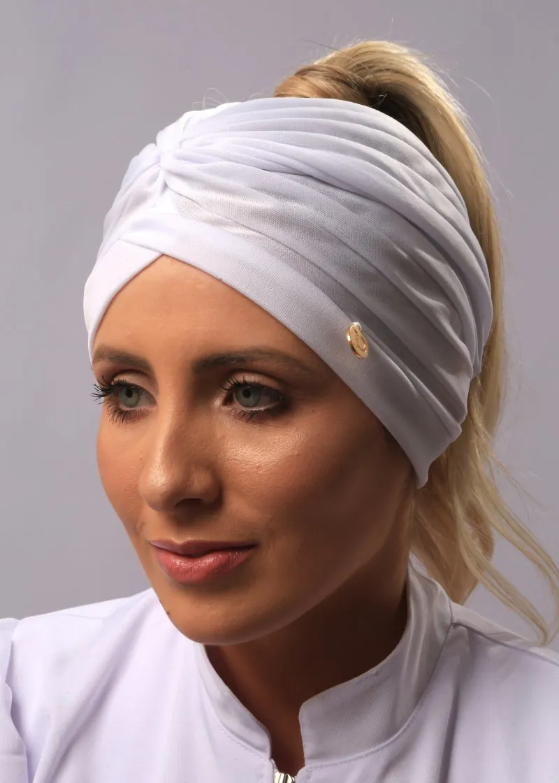 O Turbante 2 em 1 é um acessório indispensável para quem busca aliar funcionalidade e beleza no dia a dia profissional.